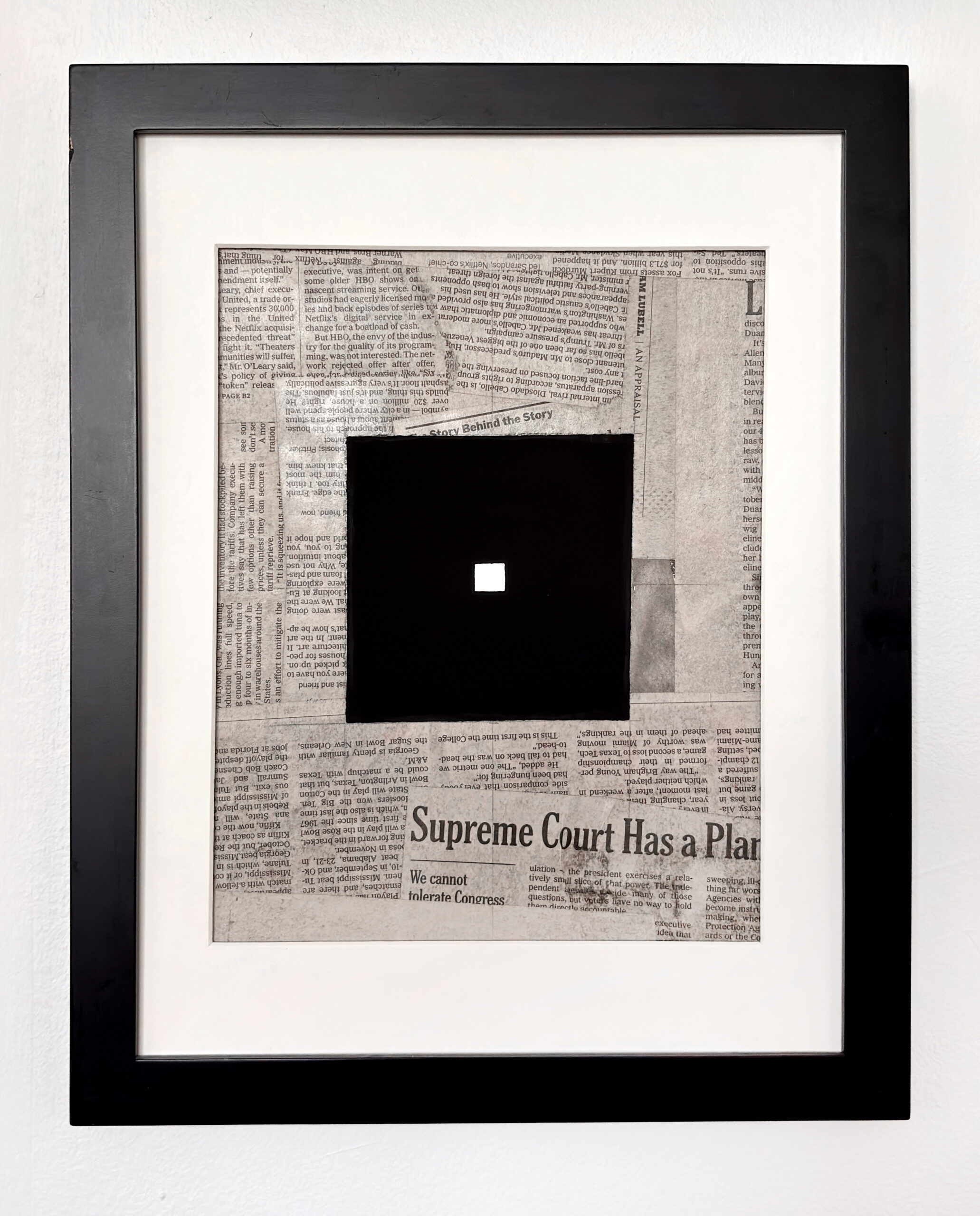 The newspaper—fragmented, arbitrary, unresolved—functions as a field of latent meaning. It resists a fixed reading. Instead, it invites projection. Interpretation becomes an act of authorship: the viewer selects, edits, assembles. Bias enters. Memory enters. Or, perhaps, nothing enters at all.