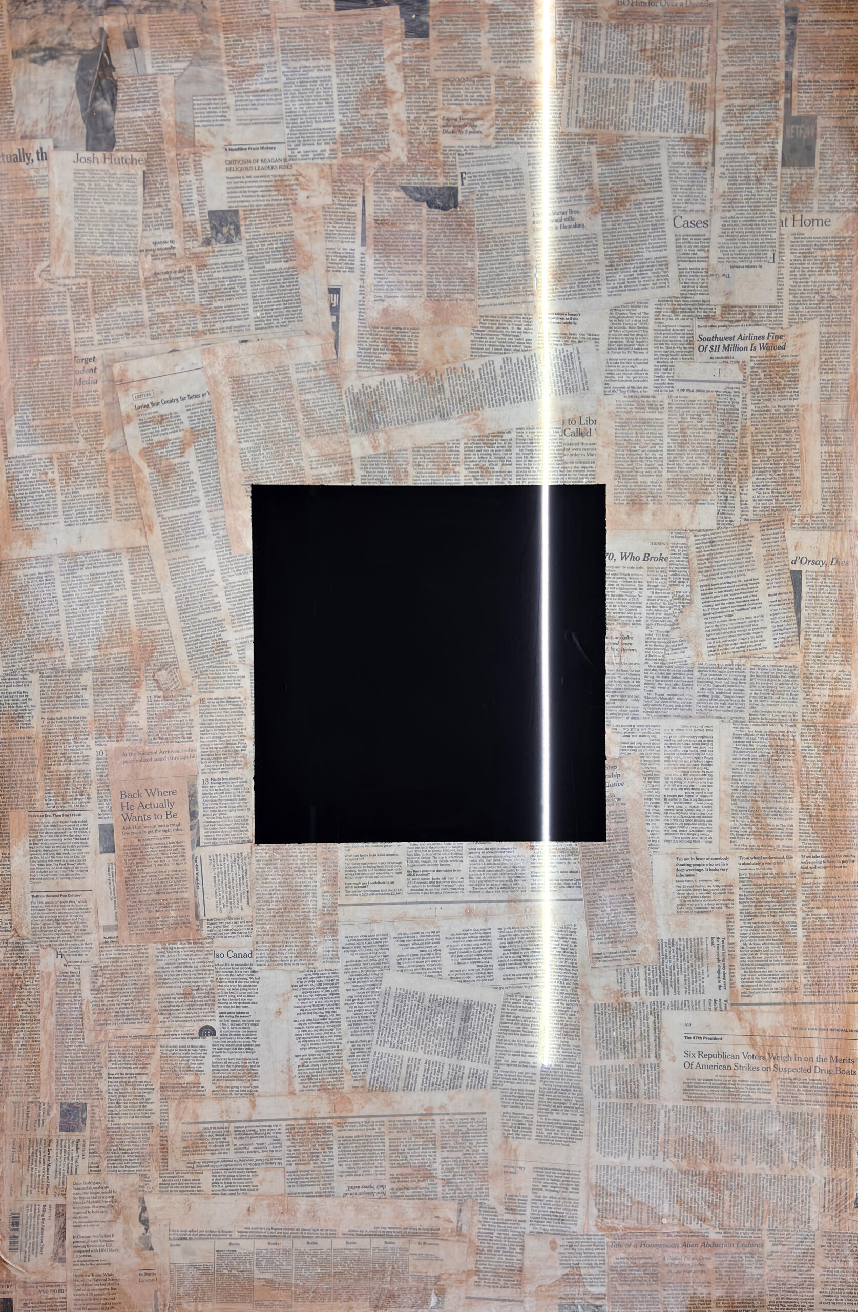 It is not merely an act of redaction. It is an assertion of another order of reality—timeless, opaque, irreducible. Where the newspaper attempts to capture the world in language and chronology, the square resists temporality altogether. It exists outside of narrative.